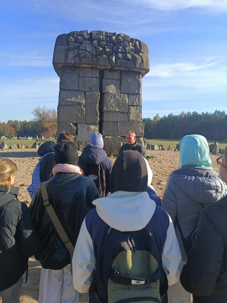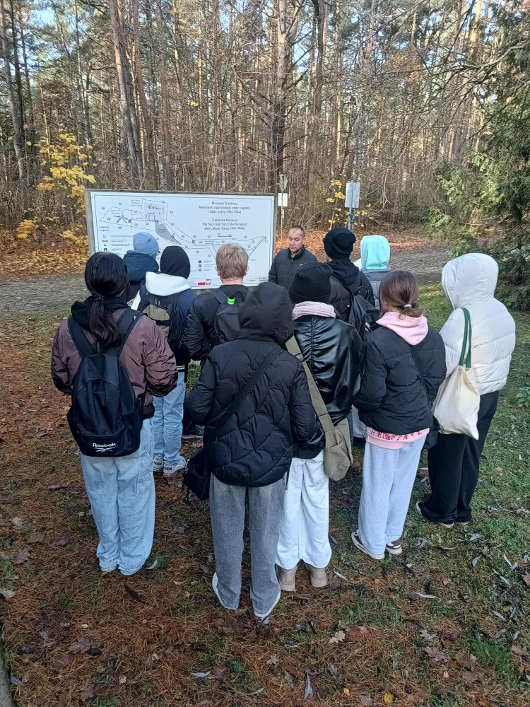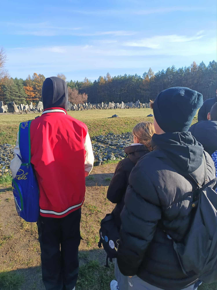 Od początku roku szkolonego klasa 8a uczestniczyła w projekcie "Podróże pamięci" finansowanym przez Biuro Edukacji m.st.Warszawy. Podczas projektu uczniowie na lekcjach historii, WOSu oraz godzinach wychowawczych zapoznawali się z losem polskich obywateli pod okupacją niemiecką oraz rozmawiali o tym czym są prawa człowiek i do czego może doprowadzić mowa nienawiści i nietolerancja. Jednym z elementów projektu była wizyta studyjna w Muzeum Walki i Męczeństwa w Treblince, która miala miejsce 5 listopada 2025r. Młodzież zwiedziła Muzeum oraz Miejsce Pamięci na terenie byłego obozu zagłady.