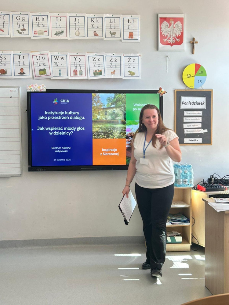 Uczniowie mieli okazję bliżej poznać działalność lokalnych instytucji i organizacji społecznych, takich jak Młodzieżowa Rada Dzielnicy Targówek, Rada Osiedla Targówek Fabryczny, Towarzystwo Przyjaciół Warszawy oraz Centrum Kultury i Aktywności.