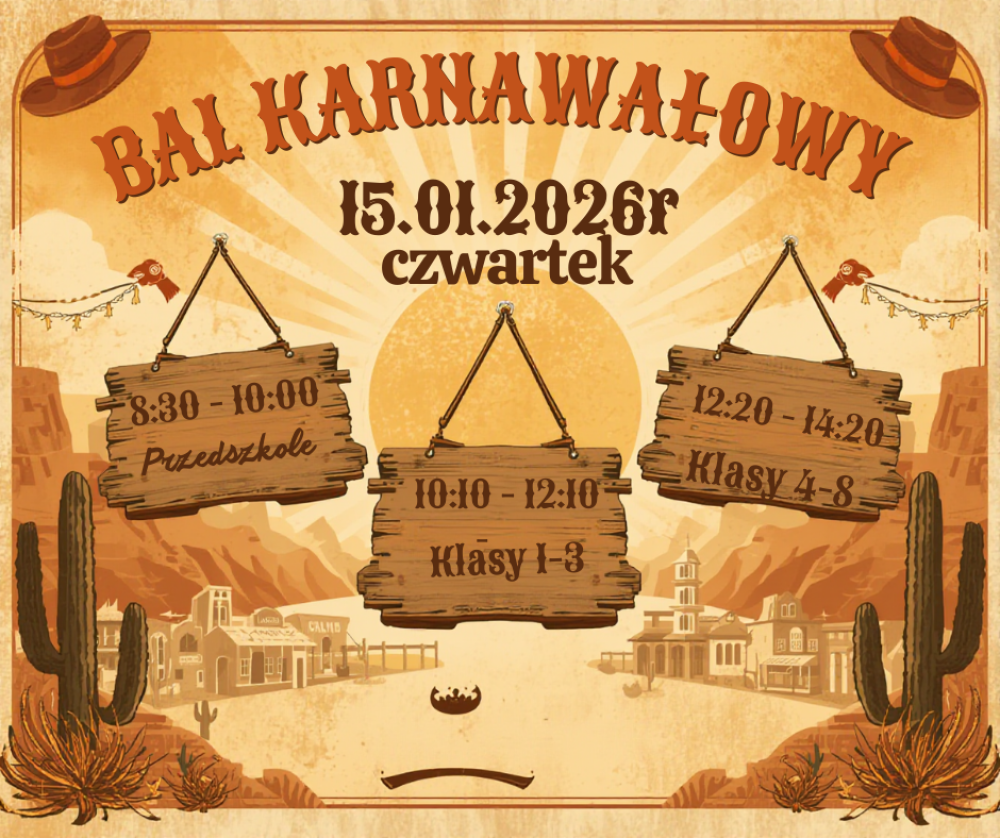 Zapraszamy wszystkich uczniów na karnawałową zabawę w stylu Dzikiego Zachodu!